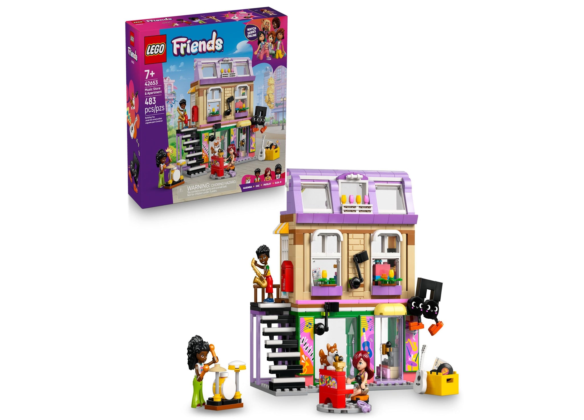 Compose. play. and live in a symphony of creativity with the LEGO® Friends Music Store Apartment 42653 Toy Building Set. 483 Pieces! This set invites a melodious blend of building and imaginative play. as kids assemble Paisley's cozy music-themed apartment atop a lively music store. Complete with quirky notes like a piano-key staircase. this set hits all the right chords with young builders.