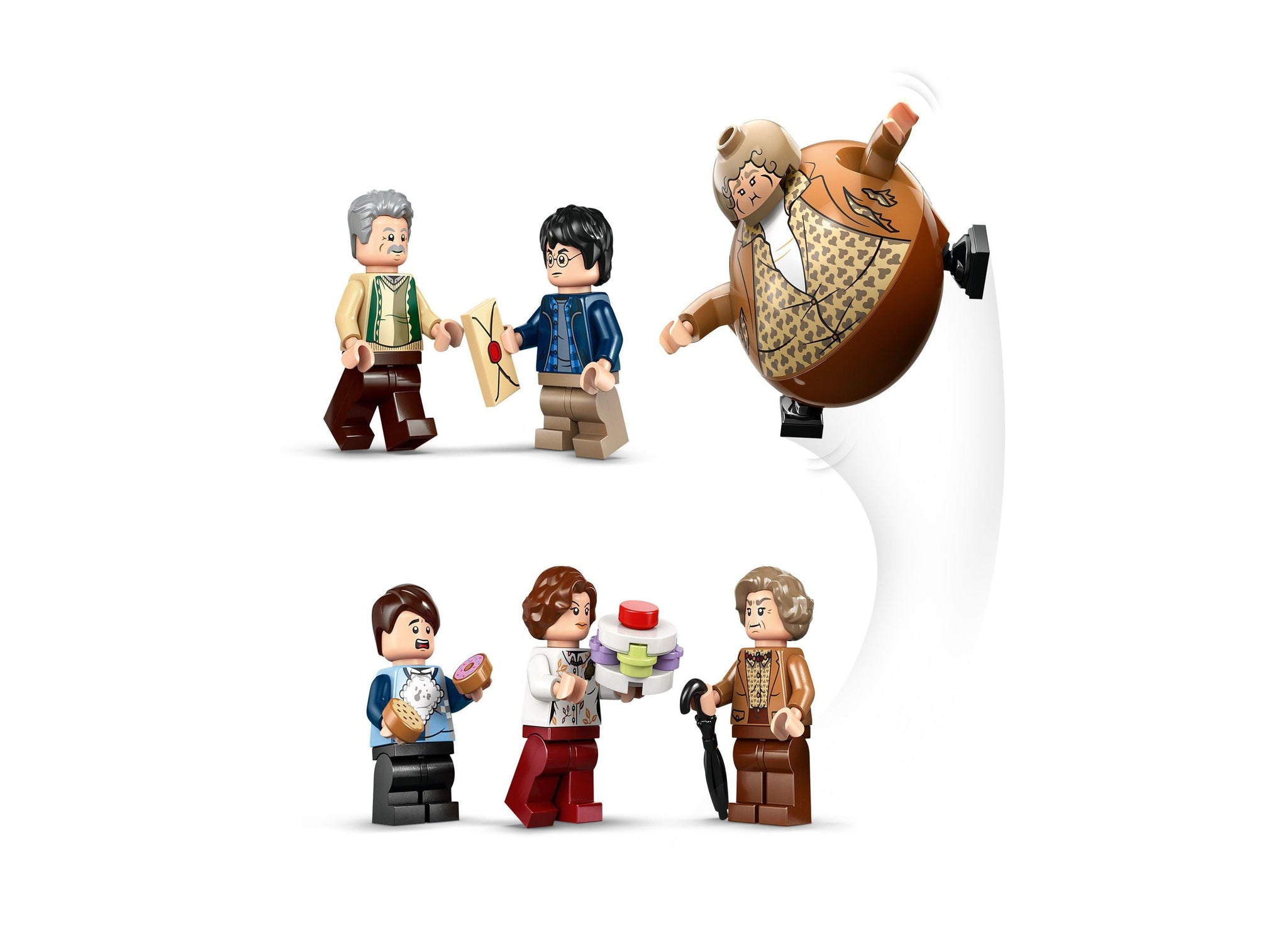 The LEGO Harry Potter Privet Drive Aunt Marge's Visit 76451 Toy Building Set features: